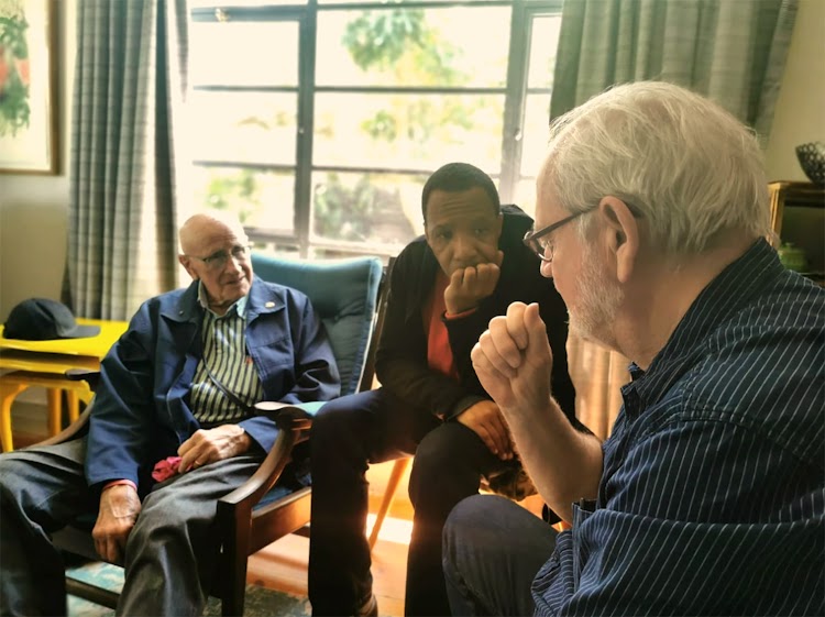 Hy daag toe saam met ’n predikant op, eerw. Trevor Nthlola van Soweto. Nthlola en Vlok doen saam ’n landwye bediening, as dit die woord is, en Nthlola doen sy doktorale proefskrif oor sy interaksie met “Oom Vlok”. Nthlola is ’n vrolike, charismatiese pastoor wat eens onder my swaer, prof. Willem Saayman, teologie gestudeer het en, sê hy, al my boeke gelees het.