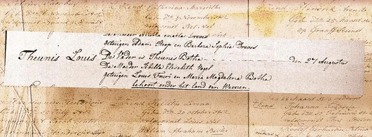 Dis meer roulette as navorsing. En eensklaps val die balletjie in die vak. ’n Plaasnaam! Spreeukloof. Die plaas is bemaak aan Theuns Louis Botha, vader van ons Voortrekker, deur sy skoonma, die weduwee Erasmus. Al die ander drade kan saamgetrek word om hier ’n plekspykertjie in te druk. Spreeukloof. Pa se brandende belangstelling om die stamplaas te vind gaan vir seker vervaag wanneer hy besef dat die Bothas heel moontlik bywoners van die Erasmusse was.